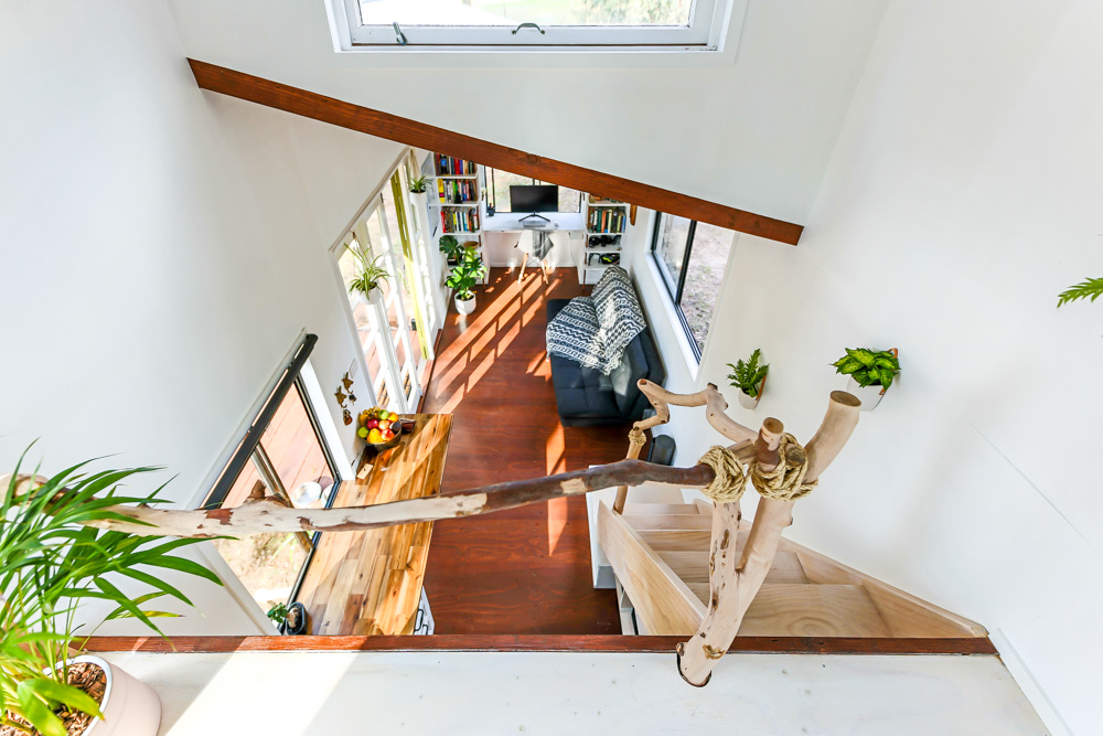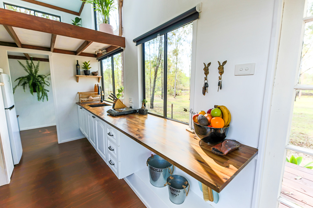 Between them, the couple studied wildlife and environmental sciences and they are passionate about living with a light footprint on the earth. A tiny house was an ideal solution for them, as it gives the couple a wonderful place to call home, while also minimising their environmental impact. They plan to put their experience with their degrees into practice on the 3 acre property just outside of Brisbane, Queensland, Australia, where their tiny house is now parked by working on regenerative projects on the land through native planting and wildlife protection initiatives.