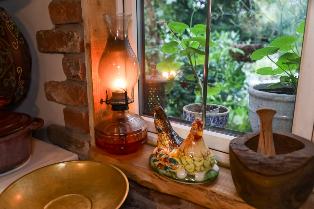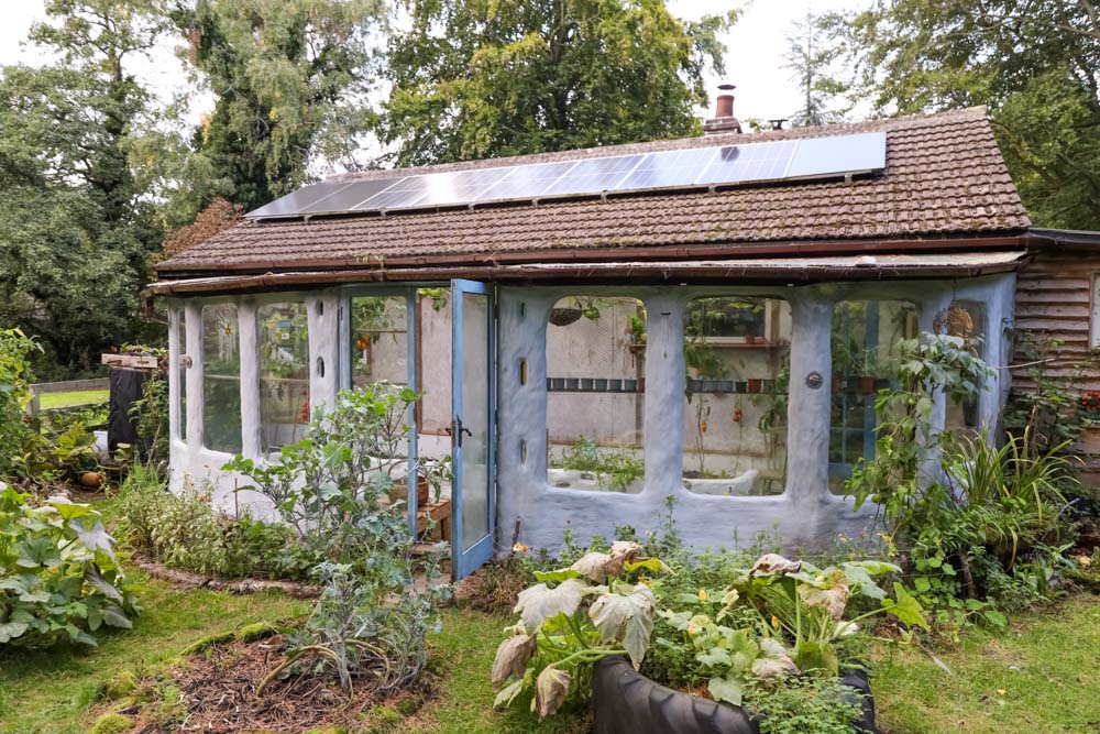 The property surrounding the home adds another layer to its story. John and his wife have created a flourishing garden that provides an abundant source of fresh food. Vegetables, fruit trees, herbs and flowers grow in generous beds that have clearly been tended with care. This is more than a garden. It is a small scale homestead that supports much of their daily life. The connection to the land becomes even more apparent through the greenhouse that links directly to the home. Built with limecrete, it brings a natural, earthy aesthetic that blends beautifully with the cottage style renovation. It is a space where plants begin their journey and where produce is gathered before being taken indoors.