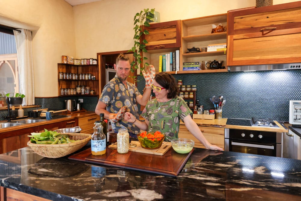 Their home sits within an intentional permaculture community near Denmark, a place built around shared values of earth care, people care, and a way of life that prioritises connection over convenience. With no fences, kids running free, community dinners, and shared land filled with forest and springs, it’s the kind of community so many people dream about, and it’s easy to see why.