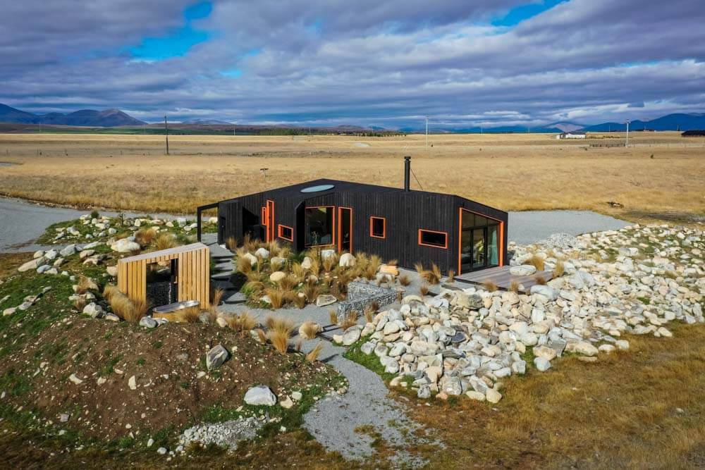 The Skylark Cabin is absolutely loaded with brilliant design. From the striking exterior designed to nestle the home into the landscape, through to the stunning cozy interior with wonderful windows that perfectly frame the exterior environment.