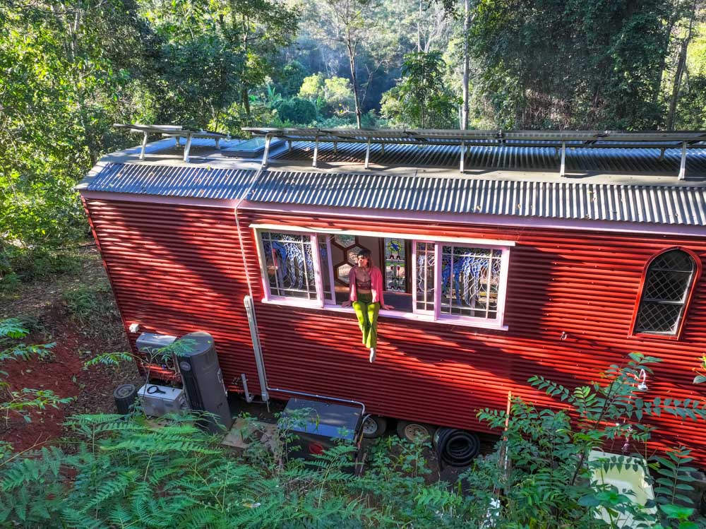 Inside, the tiny house is cleverly laid out to create both spaciousness and practicality. There’s a full-sized kitchen perfect for preparing nourishing meals, a huge walk-in wardrobe, and dual sleeping lofts, one for Emily and one for her daughter Olive. Every corner of the home is thoughtfully crafted and filled with character, from handcrafted details to artistic touches that reflect Emily’s creative spirit.