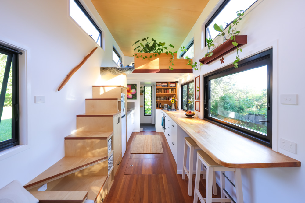 The result is a stunning tiny house tucked into the Australian landscape. It’s a space that reflects Louise’s journey: humble, warm, and full of soul. The home is built using beautiful natural timbers and features clever design elements that make it both functional and inspiring.