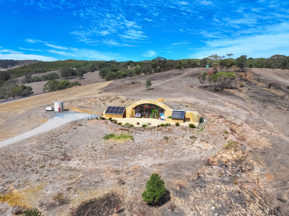 This particular Earthship, designed and built by Dr. Martin Freney of Earthship Eco Homes (alongside a team of volunteers), is a masterclass in resilience and intelligent design. Its walls are made from earth-packed tyres, while upcycled glass bottles add insulation and natural light. The home is powered by solar panels, uses a rainwater catchment and filtration system, and recycles its greywater to nourish an indoor greenhouse garden. Passive ventilation systems help regulate temperature naturally, allowing the home to stay comfortable in both hot and cold conditions—without the need for external heating or cooling.