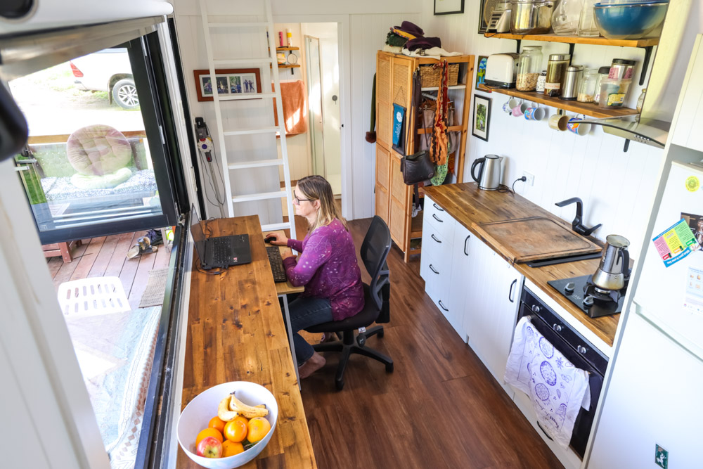 Beyond emotional sanctuary, Kirsten’s tiny house has also provided her with financial stability. By choosing to live simply in her tiny home and renting out the main house on the property, she’s been able to significantly reduce her expenses and mortgage. The result? A more affordable, sustainable lifestyle that gives her the freedom to focus on what truly matters.