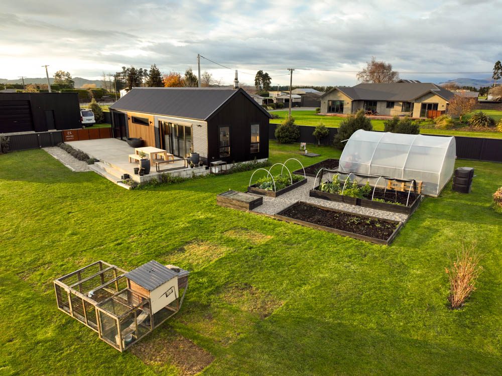 Owners Matt and Heidi have done an incredible job with the design and build of this home, which is situated on a lovely 1/2 acre section, where the couple are growing a good portion of their food.