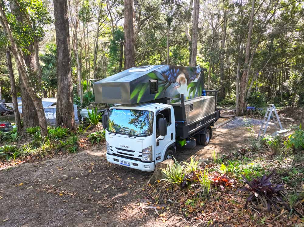 What makes this home especially unique is that it was built to sit on the back of Steve’s work tip truck. During the day, the truck is used for his job as a builder, carrying tools and materials to worksites. When it’s time to move, the tray tips up and a winch is used to pull the house onto the back. It’s a clever, multi-functional solution that means their home can travel almost anywhere they need to go.