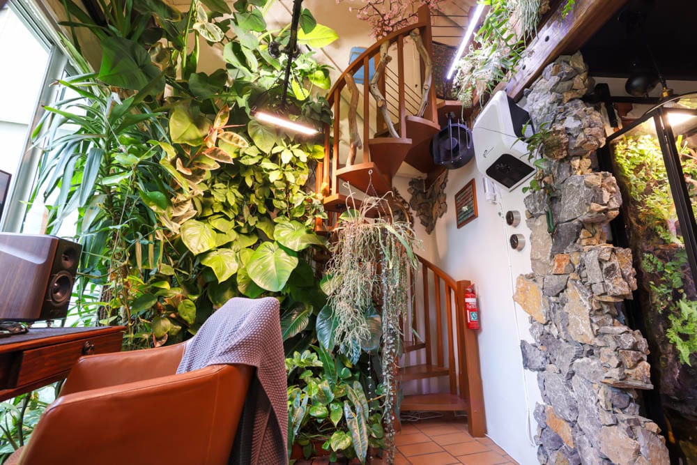 What makes this indoor jungle apartment even more impressive is that it is not chaotic or high maintenance. It is intelligent, engineered and surprisingly efficient. The courtyard runs on a multi-zone irrigation system, moss poles are fed through hidden watering lines and ventilation moves thousands of cubic metres of air through the home each hour, reducing the need for air conditioning. Humidity is carefully managed, grow lights supplement natural light and watering schedules are optimised so that maintenance remains minimal despite the scale of the greenery.