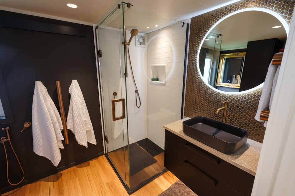 There are some tiny homes that push things further, not just in design, but in how they challenge what tiny living can be. Suzanne and Alan’s home is very much one of those. At first glance, it’s beautifully executed, with clean lines, a thoughtful layout, and a strong connection between indoors and out. But stepping inside, it quickly becomes clear that this is a home built without compromise. Every detail has been carefully considered, every finish intentionally chosen, and every space designed to support the life they want to live.