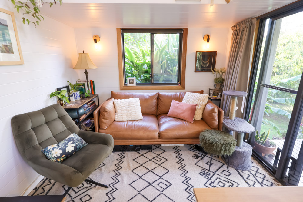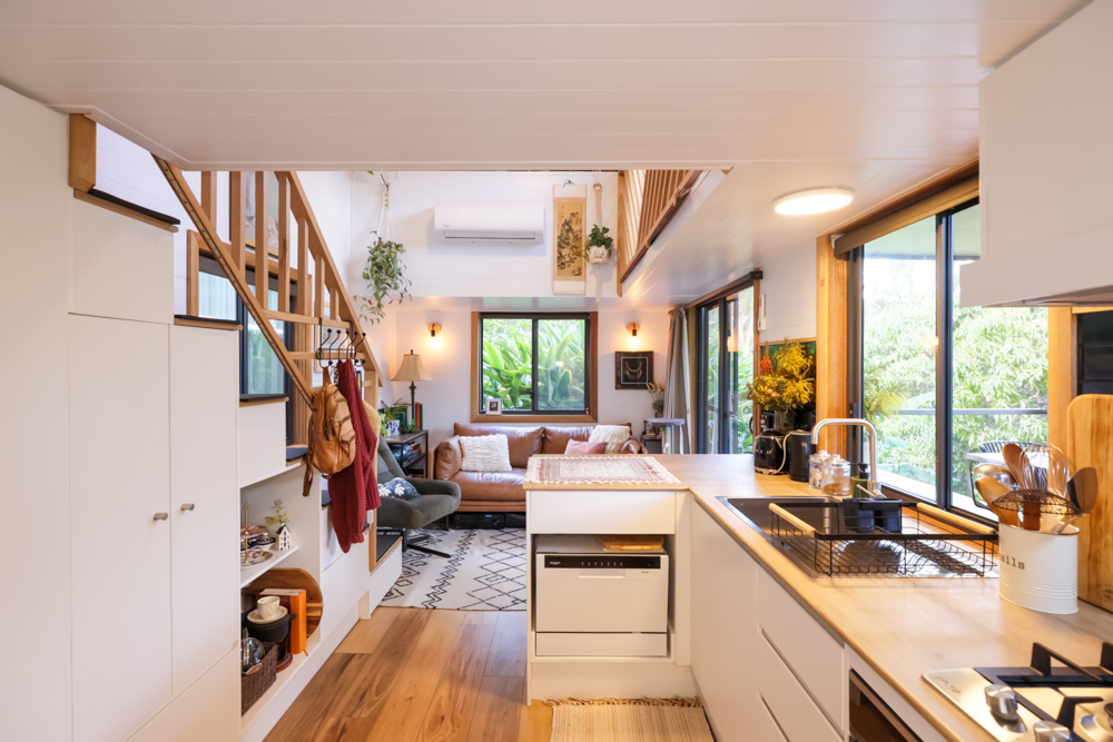Step inside and you’ll be surprised at just how much room this tiny house has to offer. The kitchen is large and functional, designed for everyday cooking with plenty of bench space and storage. The living area is open and welcoming, a perfect place to relax or entertain.