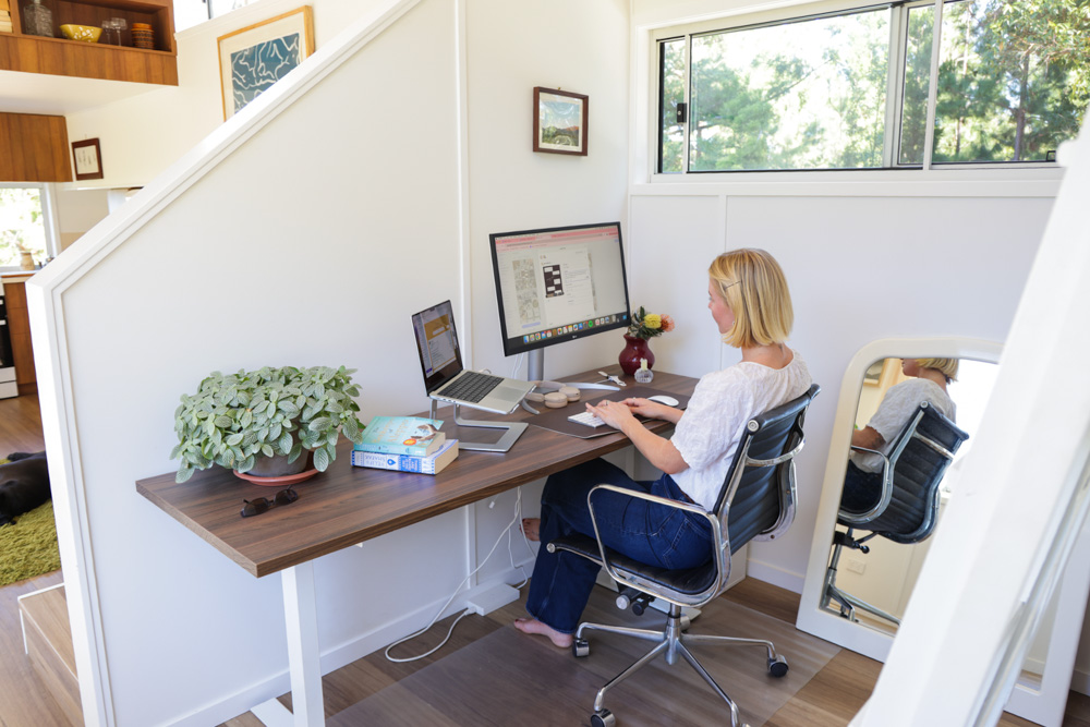 For Ash and Jacob, working from home was an important part of their lifestyle, and their tiny house has been designed with this in mind. The home office set-up is both smart and inspiring, proving that even within a small footprint there is space for productivity and creativity. It shows how a tiny house can be adapted to suit modern living, giving people the chance to work remotely while enjoying the benefits of a simpler, more intentional lifestyle.