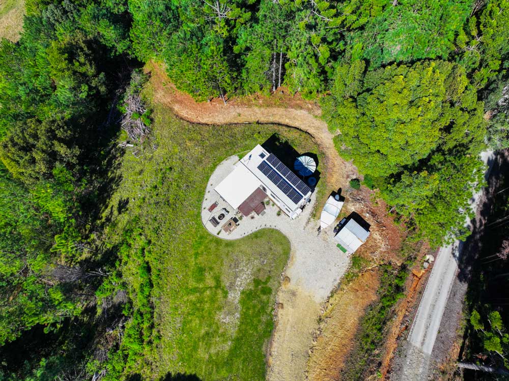This is not just any small home. From the moment you see it, it is clear that this tiny house has been created with love, care, and a true appreciation for simple natural design. It sits proudly on top of a hill, and from its windows and decks you are treated to expansive views that stretch all the way to the horizon. The house has been landscaped into its surroundings so it feels like a natural part of the land, creating a perfect sense of indoor and outdoor living that is rare even in larger houses.