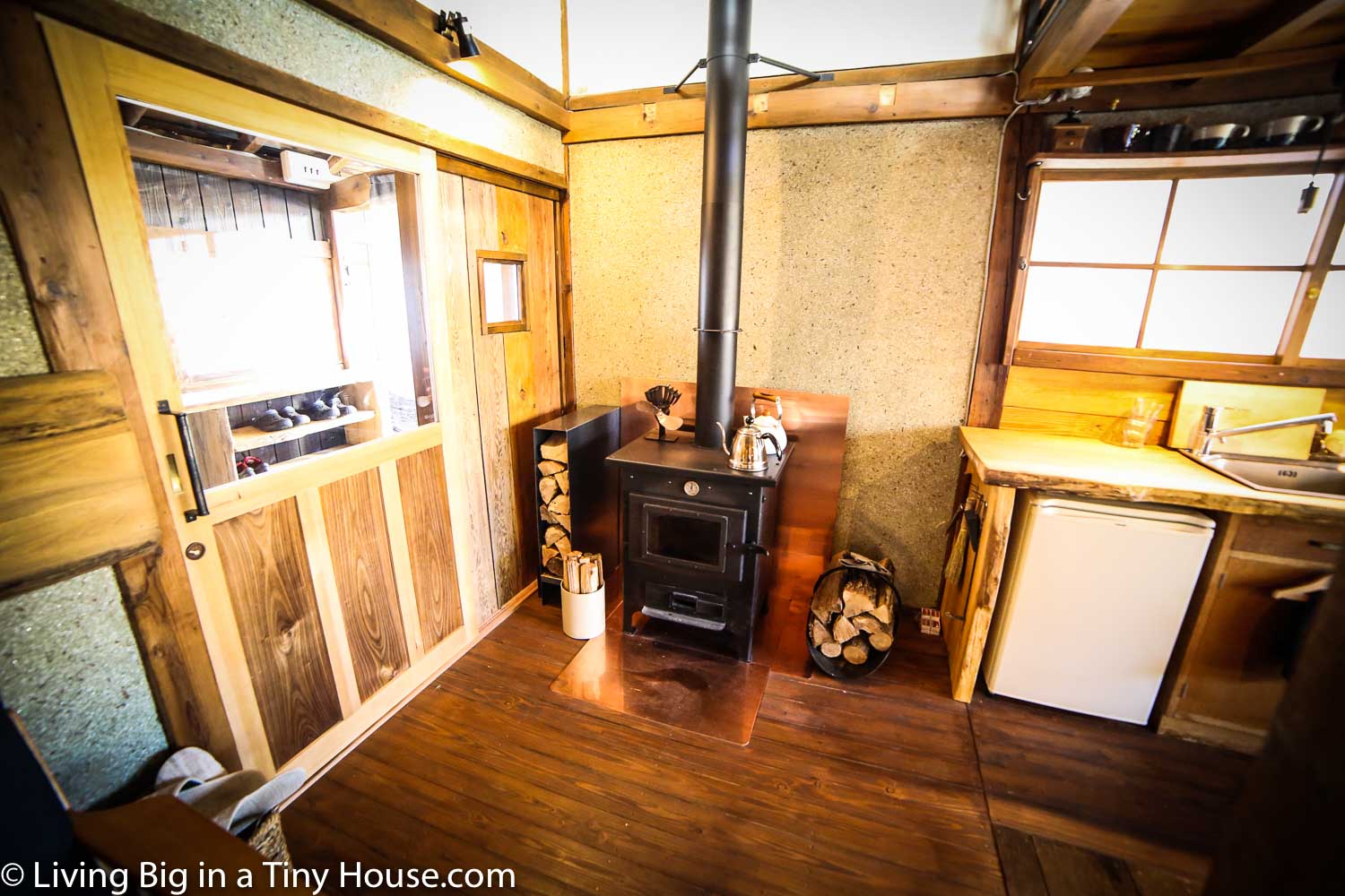 This second story is simple, yet stylish, everything having it’s perfect place. A cut-away in the level allows the heat to rise from the fireplace below and circulate throughout the upper level. The loft space has additional room for a second bed to be added and partitioned off if needed and Daigo believes this home would be perfect for a couple as well as a small family.